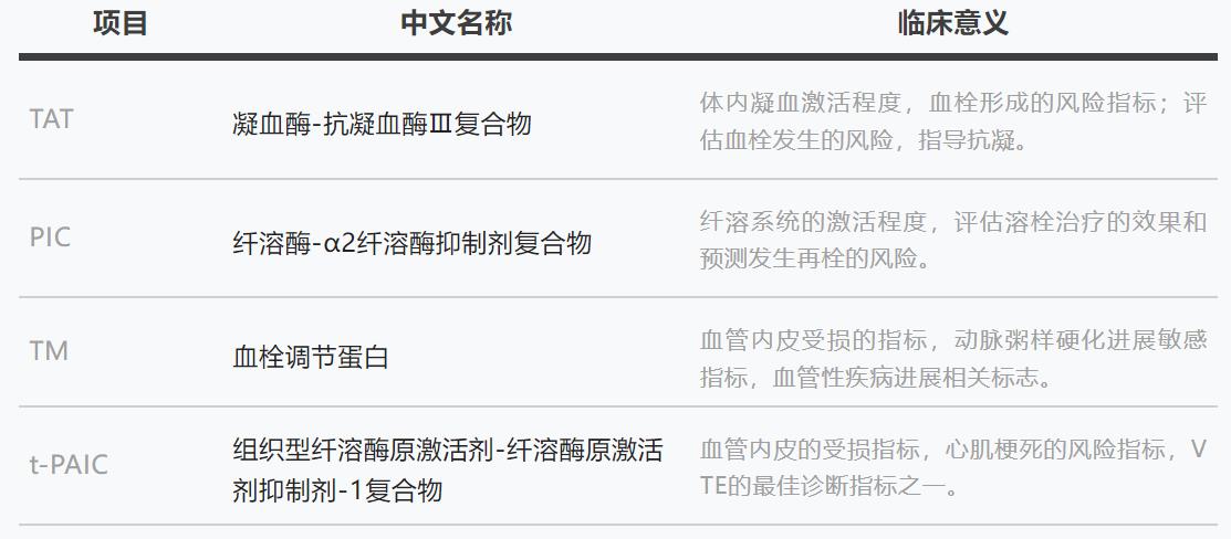 血栓四项是反应机体血管内皮、凝血和纤溶系统早期改变的有效指标,在各个系统的反应起始阶段产生,可用于早期血栓的风险评估及诊断。